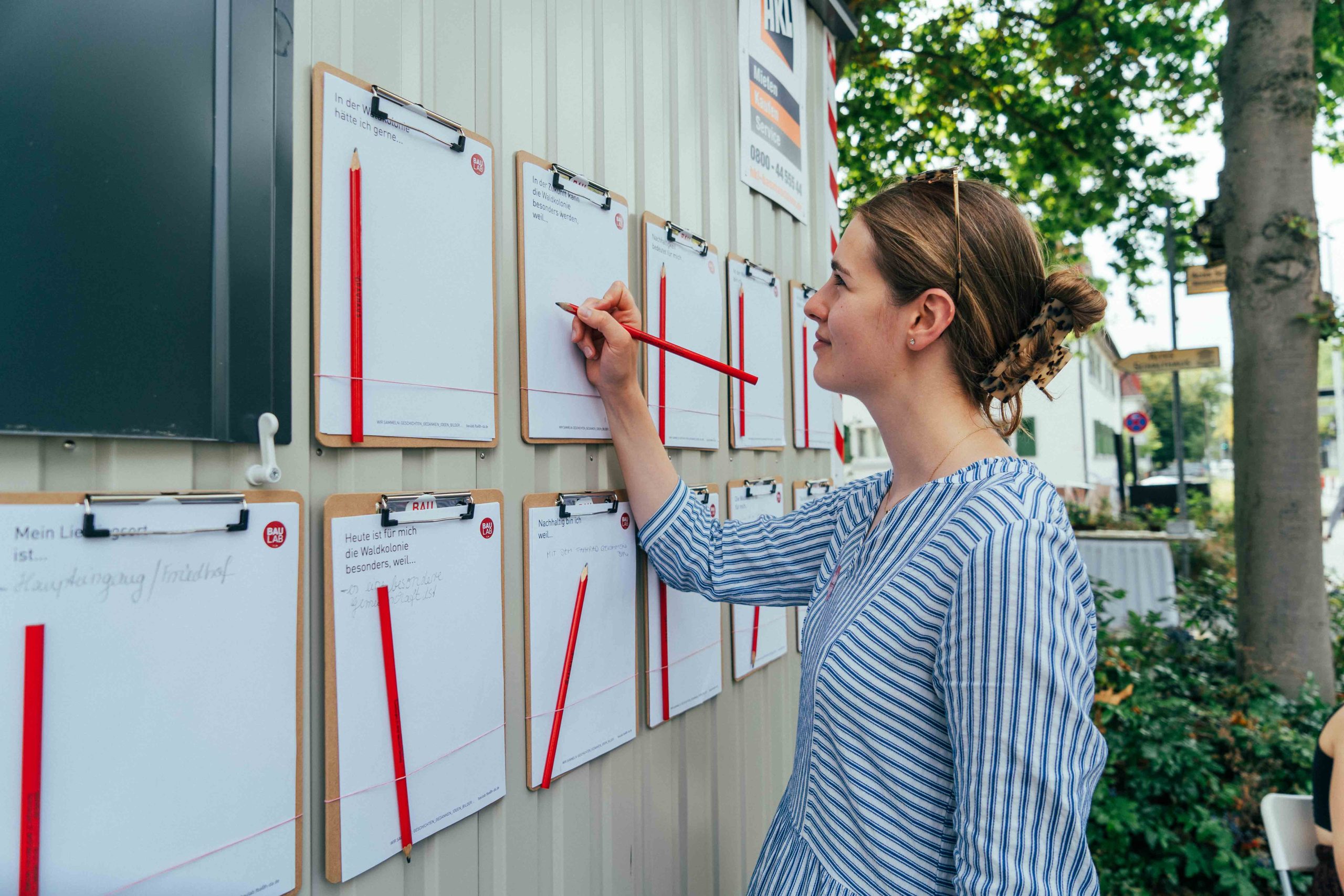 Die verschiedenen Aktionen und Formate im Sommersemester 2022 wurden vom BAUMOBIL begleitet, einem mit Fragebögen, Briefkasten, einer Legobaustelle und einem Aktionsteppich ausgestatteten Bauwagen. Dieser ermöglichte einen spontanen und freien Austausch mit den Bürgerinnen und Bürgern.