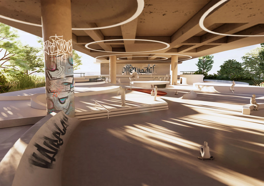 Der geplante Park soll neben Sport- und Bewegungsmöglichkeiten auch Raum für Veranstaltungen und Gemeinschaftsaktivitäten bieten. Die Entwürfe wurden zusammen mit Studierenden am Institut für Mobilitätsdesign der Hochschule für Gestaltung, Offenbach entwickelt.